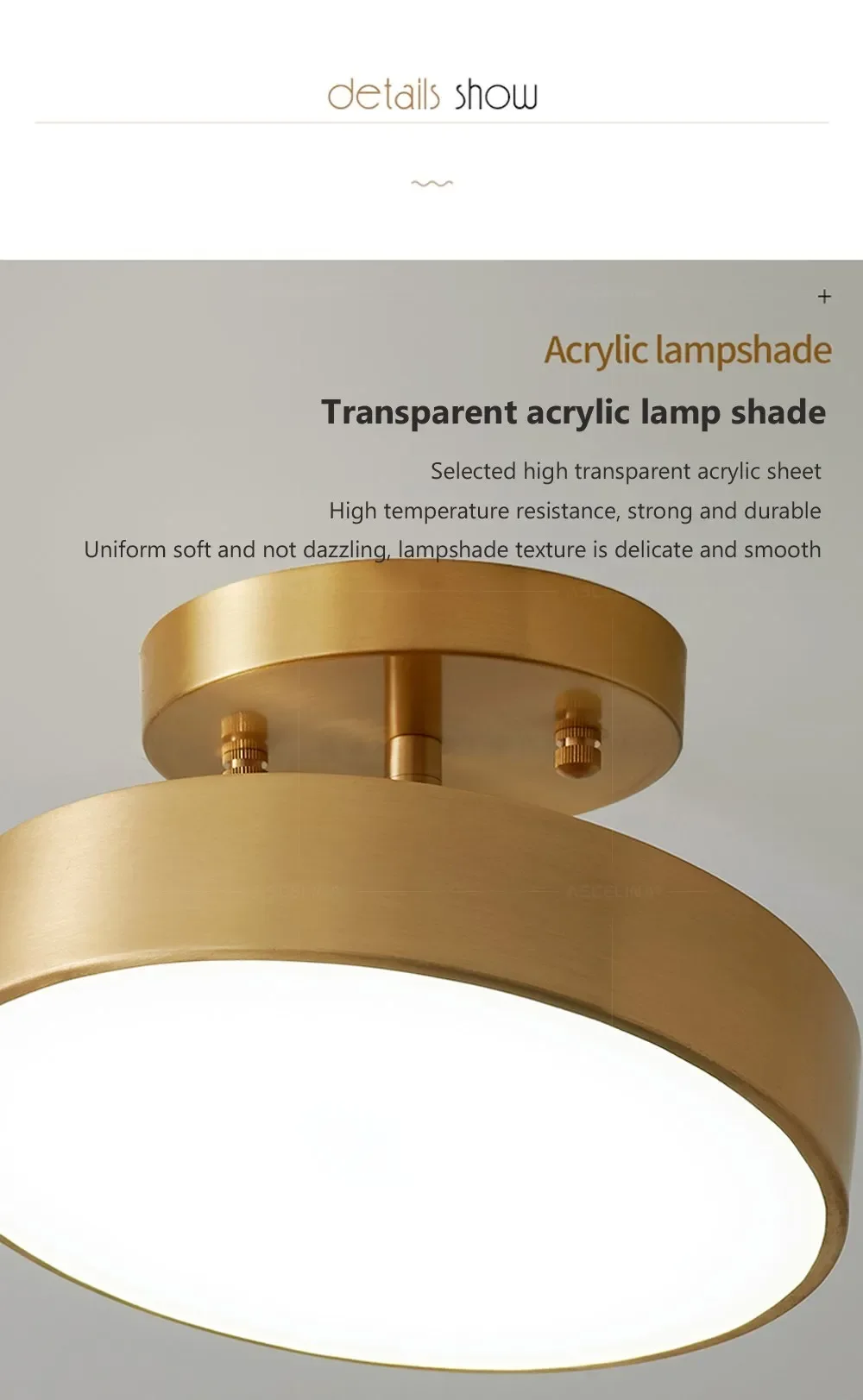 Enhance the ambiance of your home with the versatile brass/black finish semi-flush mount ceiling light. With its modern flat circle design and frosted acrylic shade, this stylish lighting option suits various interior styles, such as urban, vintage, or transitional decor, infusing any space with a touch of sophistication. The adaptable light fixture with swivel item kit allows for universal scene application with an adjustable lighting angle. It can be used in sloped ceilings, providing customizable coverage and lighting angles suitable for accent lighting, task lighting, or general room illumination.