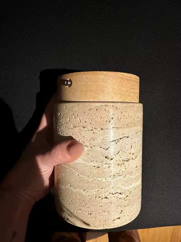 Modern Mid-century Stone Travertine Ceiling Lights, Flush-mount Cylindrical Cave Stone Shade LED Downlights
